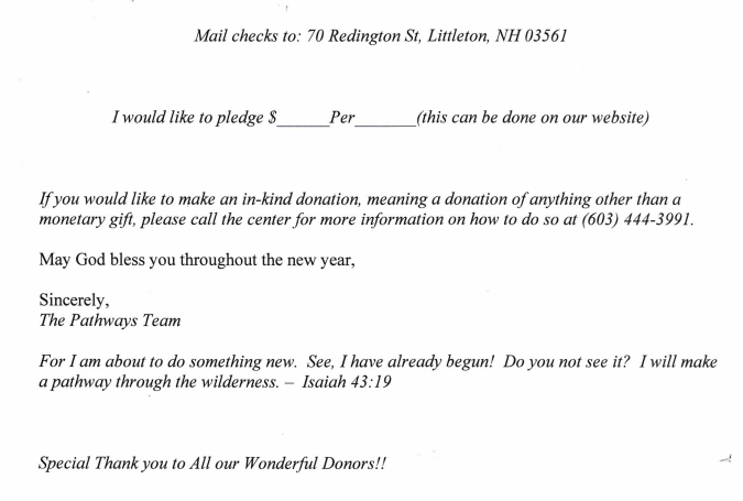 70 Redington Street, Suite 100, Littleton, NH 03561 603-444-3991 pathwaysinnh@gmail.com www.PathwaysCareCenter.org